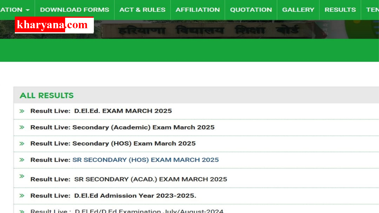 भिवानी, 20 मई, 2025 हरियाणा विद्यालय शिक्षा बोर्ड द्वारा संचालित करवाई गई डी.एल.एड. प्रवेश वर्ष 2020-2022, 2021-2023 के छात्र-अध्यापकों की मर्सी चांस एवं प्रवेश वर्ष 2022-2024 प्रथम व द्वितीय वर्ष (रि-अपीयर) व प्रवेश वर्ष 2023-2025 प्रथम वर्ष (रि-अपीयर) परीक्षाएं मार्च-2025 का परिणाम आज घोषित कर दिया गया है। सम्बन्धित छात्र-अध्यापक अपना परीक्षा परिणाम बोर्ड की आधिकारिक वेबसाइट www.bseh.org.in पर दिए गए लिंक पर देख सकते हैं।
