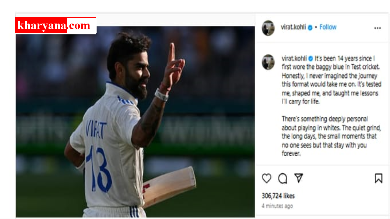 विराट कोहली ने अपने इंस्टाग्राम पोस्ट में कहा, "14 साल हो गए हैं जब मैंने पहली बार टेस्ट क्रिकेट में बैगी ब्लू जर्सी पहनी थी।